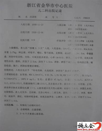 应彬彬女儿应语彤出院记录