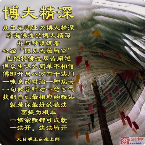 众生无明业力博大精深,才有佛法的博大精深。并与时俱进着。心经“照见五蕴皆空”,已经将佛法尽皆阐述。但众生认为简单不相信,佛即开启八万四千法门。一味良药对治一种病苦,一句教导针对一念习气。找到自己最相应的教法,就是你最好的教法。一切宗教都可成就,一法开,法法皆开。