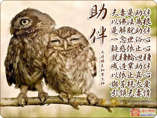 夫妻是助伴。以佛法为根,是解脱助伴。一念世俗心,疑惑依止心,就种轮回种,成造业助伴。以依止真心与菩提大爱,引领夫妻情。