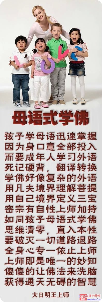 “孩子学母语迅速掌握,因为身口意全部投入。而要成年人学习外语,死记硬背,翻译转换。学佛好像复杂的外语,用凡夫境界理解菩提。用自己境界定义三宝。密宗有自性上师加持,如同孩子母语式学佛,思维清零,直入本性。要破灭一切道路退路,全身心专一依止上师。上师即是唯一的妙知。傻傻的让佛法来洗脑,获得通天无碍的智慧!”