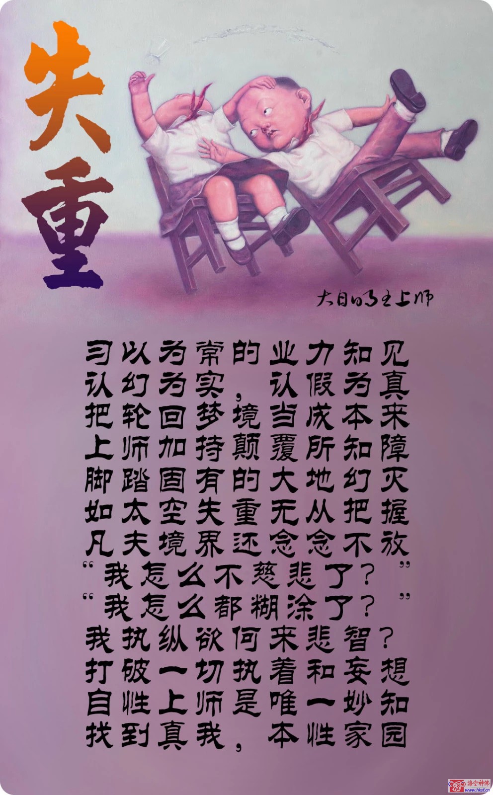 跳出假我,是一道难以逾越的鸿沟。颠倒执着妄想,使众生在梦幻的世间沉溺,对本性的觉知产生怀疑和警戒。失重,是对发起厌患出离心的信众,在至上依止的前提下,由上师加持,所感到超越无明的一种不适。强大的业力习气是无量劫的熏染累积,在每个潜意识中都浸透我执。佛法讲,不怕妄想,就怕觉迟。一切凡夫心的超越,完全依赖于自性上师的加持。而对于固有知见的颠覆,佛性与魔性的洗脑角逐中,却搞不清哪个是真,哪个是假,哪个是对,哪个是错。不禁对修行怀疑的问道:“我怎么不慈悲了?”,“我怎么都糊涂了?”。认为自己凡夫心的利他是慈悲,认为凡夫心的明白是智慧,执着盲修瞎练的错解佛理,产生退失的假象。通过修行和佛理闻思,以前的慈悲利他,都是为了自我境界和标准的纵欲,沉溺无明,丧失禅定的愚痴。在磨难挫折中又何时具足信心?受到伤害时,身口意又何曾为利他所行?反而随业流转,纵容众生造业,甚至自己还不如众生力度与智慧,被奴役,被榨取中愚痴感恩。通过上师加持,轮回城池突然崩塌,我执的大地突然幻灭,失去了我执的毒根,如太空站失去了重力,找不到一个心灵的支撑。