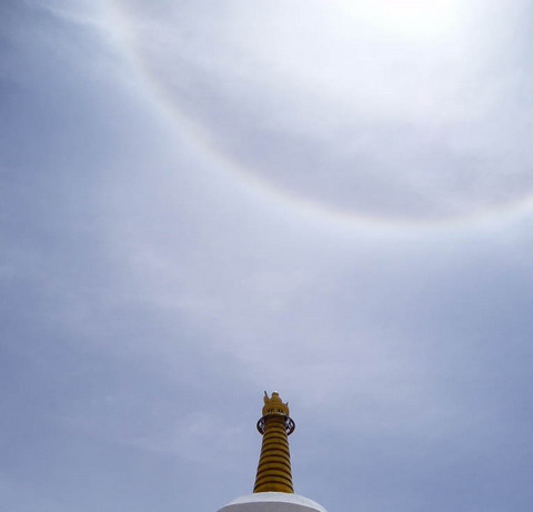 那一年跟随海空神佛上师在西藏法会期间头顶上方出现罕见圆满光,随法会而显现,随法会和逝去。让我们来再次目睹这殊胜的时刻: