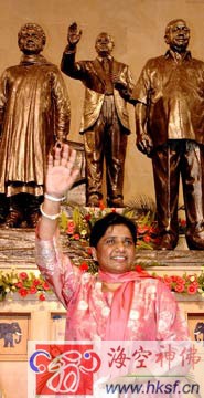 印度“达利特女王”玛雅瓦蒂虽然属于“达利特”这样一个“不可接触”的阶层,(“达利特”,英文Dalit ,是印度独立前对社会最底层民众的一种特定称呼,又称为“贱民”。)并且身材也只有1.5米高,但她想让人们知道,在政治方面她是一个巨人。这位统治印度人口最为稠密的北方邦的首席部长、潜在的总理候选人,命令拆掉她3.7米高的青铜雕像,用一个高达5米、重20吨、成本约为50万英镑的更大雕像取而代之。
